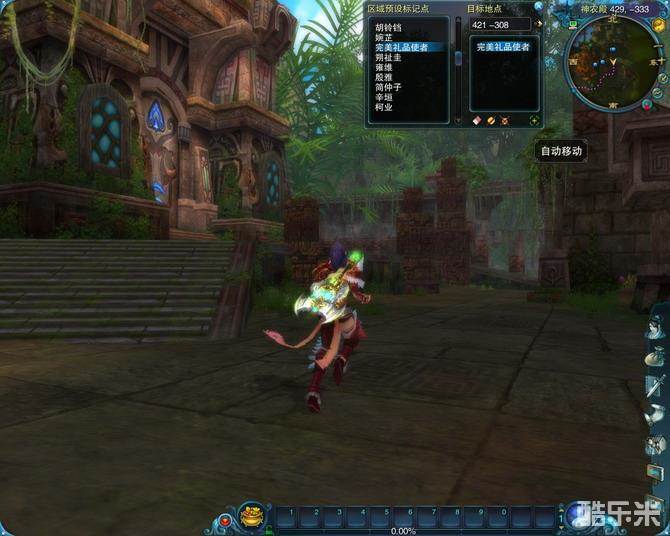 选择好目标位置后,点击标记位置窗口右下方“自动移动”按钮就可以启动自动寻径系统了。