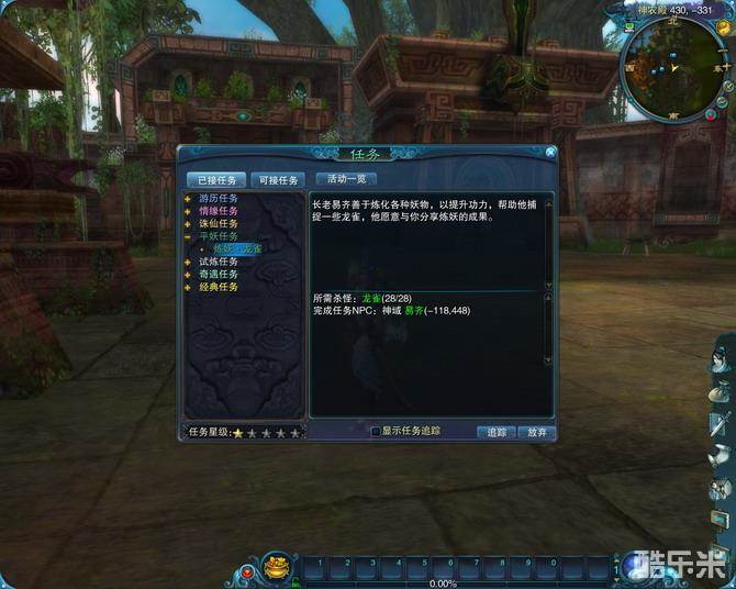 任务描述中通常会包含您所要去杀的怪、所要收集的物品、所要去找的NPC等等,这些信息会以黄色字体显示,您只要点击这些信息,自动寻径就会开启,如果选择的是NPC,那么自动寻径会将您带到NPC处,如果是要杀的怪物或者要杀某种怪收集的物品,自动寻径会将您带到该种怪物聚集的地区,如果是位置地点,自动寻径也会将您带到合适的位置。