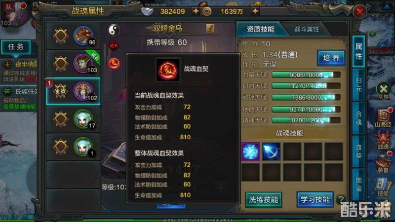 以99级攻击类战魂为例,攻击力4000,物理、法术防御3600,最大生命值45000,通过血契技能将7%攻击力转化给角色,4只4000以上攻击力的战魂,则能够给角色增加1120点以上的攻击力、1260点双防、15740点生命值加成效果。