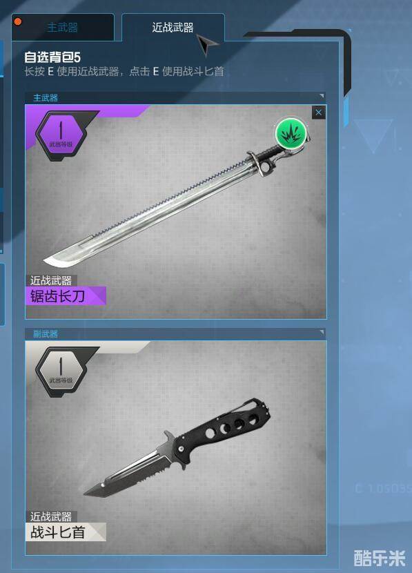 (可同时装备一把长刀类近战武器(长按E)和一把近战匕首(短按E))