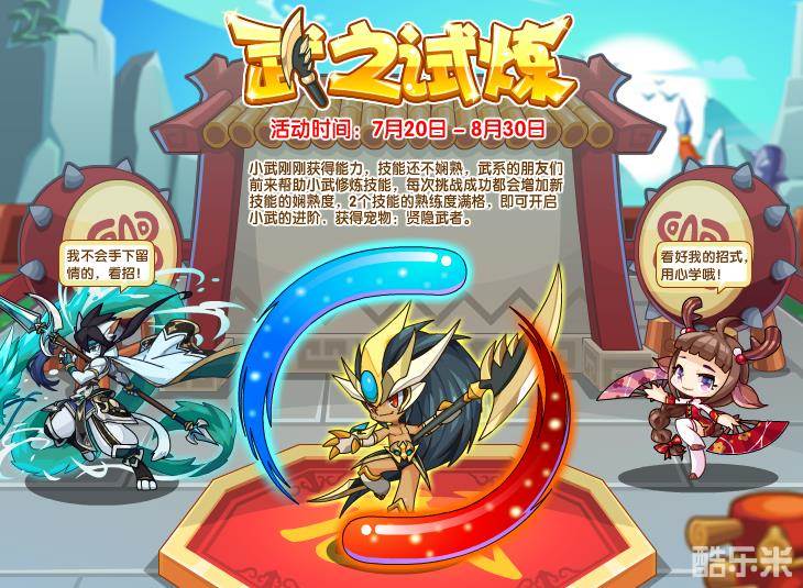 小武刚刚获得能力,技能还不娴熟,武系的朋友们前来帮助小武修炼技能,每次挑战成功都会增加新技能的娴熟度,2个技能的熟练度满格,即可开启小武的进阶,获得宠物:贤隐武者。