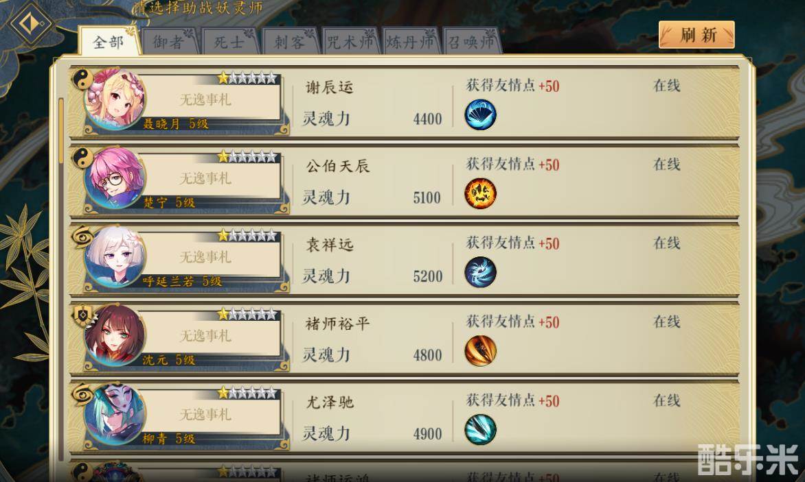 根据敌方阵容的不同选择合适的妖灵师,一定要注意阵容的搭配,如果想要增加妖灵师的持续战斗能力,辅助和回血是必不可少的。