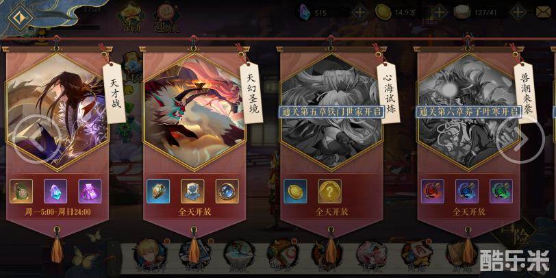 妖灵师通关第三章-森林密境后可以通过主城下方功能栏处点击历练进入天才战界面