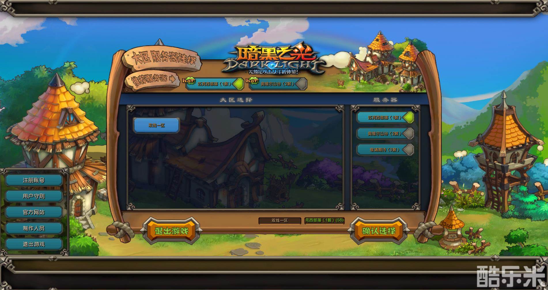 步骤三:载入游戏后,会看到选择大区和服务器界面,选择好区服后,点击“确认选择”进入账号登陆界面