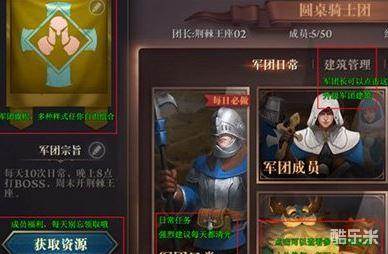 1、荆棘王座中的玩家可以自己先创建一个军团,然后召唤熟悉的小伙伴们前来加入,军团每天可以有免费资源获取,团长可以给熟悉的团员以副团长的职位,帮助团长处理事务。