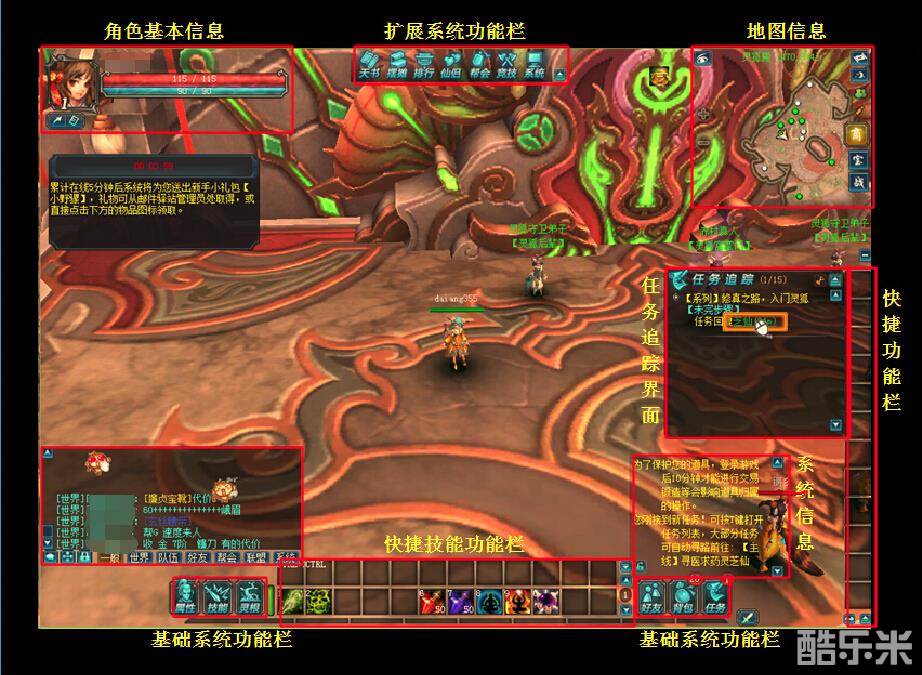 进入游戏后,呈献在你眼前的这个界面就是游戏主界面了,它主要由以下几个部分组成,每一个部分都有不同的作用。
