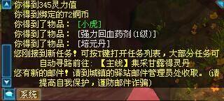 玩家可以在这里看到物品拾取、经验、灵力获取数等相关系统信息