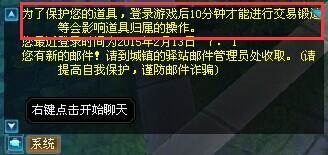 备注:每个角色在登录游戏后,会有10分钟的安全保护时间,在此期间内不能进行任何形式的交易。