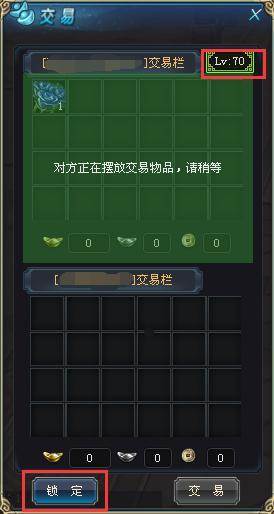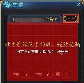 5.当交易玩家是40级以下角色,则交易界面的对方角色等级以红色字体标识。且增加醒目红色框提醒玩家。