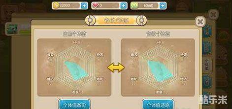 遇到个体值太差的精灵,可以消耗金币和神奇胶囊进行个体值洗练。每次洗练后都会获得一个全新的个体值。遇到还不错的个体值记得备份哦,备份可以记录一次个体值,如果洗不到心仪的个体值,也可以还原为之前备份的个体值!