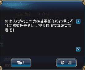 d、接受委托时,会弹出如下对话框,需要支付3金押金,押金只能用非绑定金支付。押金在完成委托后自动退还,如果接受委托后未能完成,押金将被扣除不做退还。