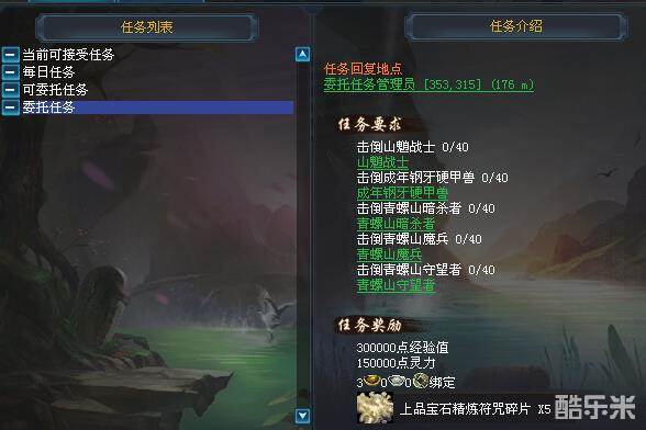 f、接取后的委托会在任务列表中【委托任务】类显示,点开【委托任务】即可查看任务详情。