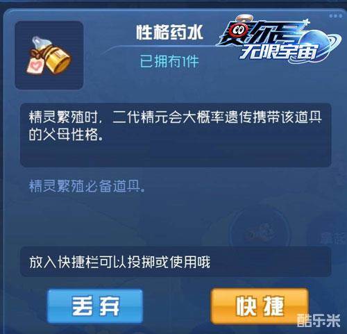 《赛尔号:无限宇宙》为精灵准备了20多种性格,赋予了每个精灵或顽皮或天真的不同性格,同时每种性格都会为精灵的属性带来一些加成。所以即使是同一种精灵,也会因为性格的不同,在战斗时发挥出不一样的能力。在精灵繁殖时,使用性格药水,二代精元会大概率遗传携带该道具的父母性格。通过大乱斗玩法,就可以获得性格药水。