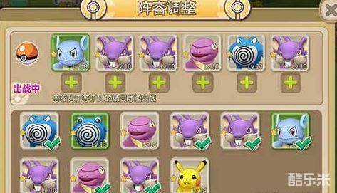 这个阵容除去初始小精灵的最终进化形态是必备的以外,其他的为什么这么选呢?让小编细细道来,首先是快泳蛙,小编的快泳蛙是蚊香蛙进化来的,这样就继承了蚊香蛙的催眠技能和连环巴掌和水枪的技能,所以可以用催眠加连环巴掌打组合技能。接着是皮卡丘,皮卡丘的电磁效果可以限制对手行动,麻痹对手,接着就可以用技能攻击。大嘴蝠可以利用组合技能,混乱和咬咬可以打出出其不意的效果,美丽花利用麻痹粉和花之舞也可以打出非常高的伤害,白海狮属于水系和冰系的结合,可以打出非常高的伤害。