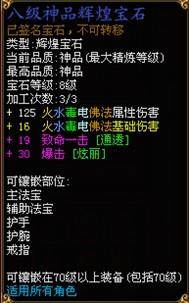 | 消耗物品 | 无 | 1,2,3,4档次不需要 5,6档次1颗7级下品宝石或1颗宝石精华 | 2颗7级下品宝石 或2颗宝石精华 | 6颗7级下品宝石 或6颗宝石精华 |