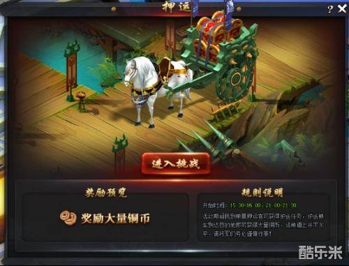 每日15点30分-16点00分,点击主界面右上方日常活动图标则弹出押运界面。