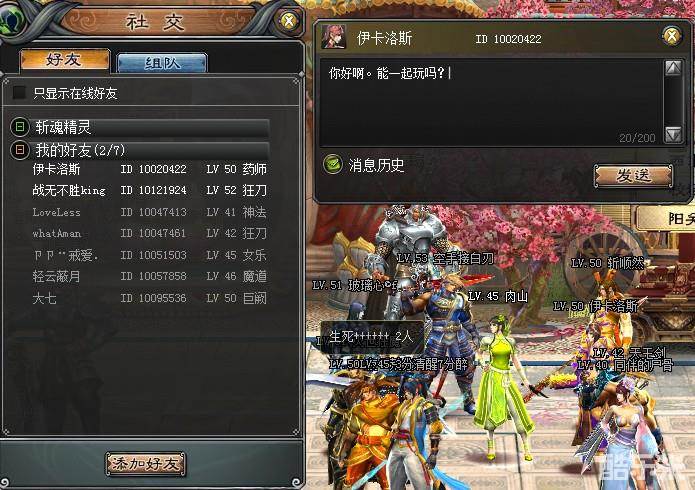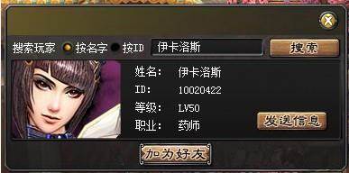 玩家在畅玩游戏时,可将志同道合者加为好友,加入好友后,可在好友列表中显示好友的相关信息,如是否在线,名称、ID、等级,职业等。
