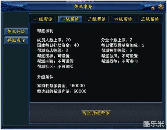 3、 帮派成长