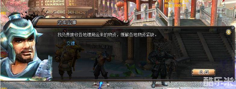 每天的13:00~14:00、21:00~22:00,玩家可找阳关的廖镖头领取镖车押镖,领取镖车需要扣除相应的押镖令。将镖车护送至扬州的武库监事。护送镖车的过程中,其他玩家可对镖车发动抢劫,一旦抢劫成功则镖车会丢失部分财物。