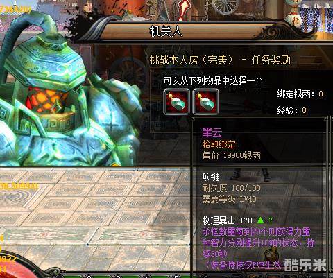 40级后可以接到任务“挑战木人房(完美),完成后将得到紫色首饰的奖励。