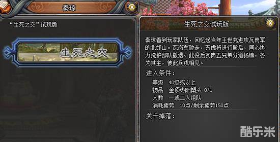 有金顶枣阳槊头和10点或以上疲劳值,即可从秦琼处进入生死之交玩法关卡,进入同时消耗金顶枣阳槊头*1和10点疲劳值。