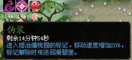 伪装:此BUFF消失后玩家将传送至凝碧崖,伪装期间取消变身效果将被强制传送至凝碧崖;