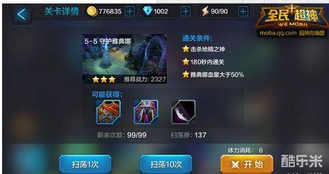 通关条件:击杀地精之神、180秒内通关、雅典娜血量大于50%