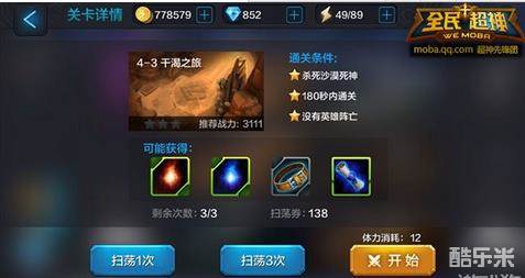通关条件:杀死沙漠死神、180秒内通关、没有英雄死亡