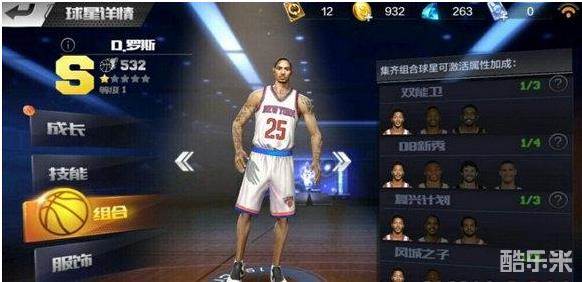 在球星页面中我们可以看到罗斯的组合搭配,双能卫、08新秀、复兴计划、风城之子等四种组合,我们可以根据每个组合的提示进行球星收集,每个组合提供的属性也不相同,如果资源允许的情况下可以全部收集。属性会变得更加强大一些。、