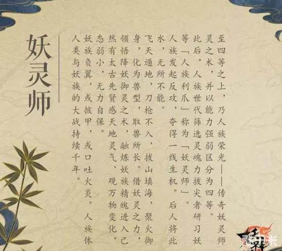 此后,人族世代筛选灵魂力拔尖者研习妖灵之术,并以能力强弱区分为四等,至四等之上,乃人族荣光——传奇妖灵师。