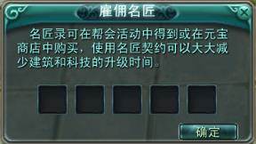 加速成功后,帮会将得到一条提示如:“青龙使“虎行云”使用了名匠录。大大加速了4级“帮会农庄”的建设/3级《梦溪笔谈》的研究。”