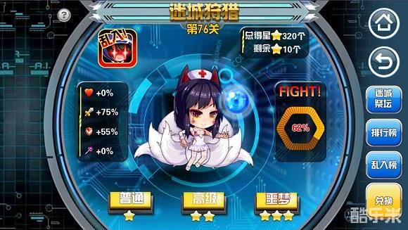 要想成功征服迷城,首先就要对迷城有着充分的了解。在迷城狩猎中每次挑战都有不同的星级可选,而不同的星级对应的对手难度也不同,而针对自己的战力来选择合适的对手就是在迷城狩猎的一项很重要的能力了。在危险的迷城中,每隔20关就会清空一座城市的敌人,为了拯救地球而努力吧。在打败敌人后会根据难度获得星星,而这个星星可以在迷城祭坛中购买强力的属性加成来增强自身。各位小伙伴们不用担心第一天打过之后第二天还要从头再来,经过小编的研究,只要三星通关到一定层数,在系统的开始会有扫荡功能,可以快速到达上次三星通关的位置。