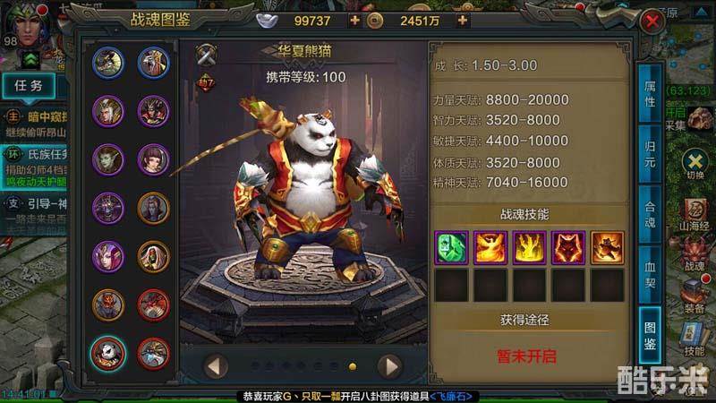 最后编辑于7年前在《QQ华夏》手游已经进入了百级阶段,玩家们可以携带成长和天赋更高的100级战魂,在100级的战魂中,两个紫色的震天雷兽和云麓仙子已经登场,而大家最关注的100级红色品质的华夏熊猫、火麒麟和旋龟也即将提升日程。其中火麒麟是智力型战魂,有着最高的智力天赋,被看作是加强版的耀嘉,让我们来介绍一下火麒麟的特点。