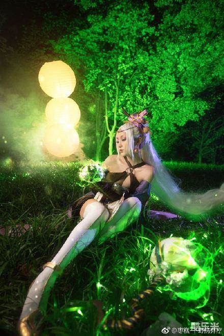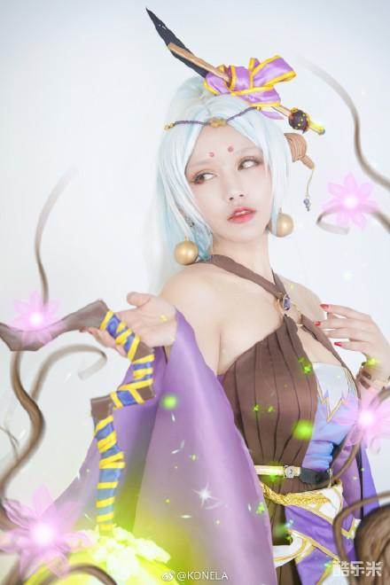 coserKONELA选择用白色的背景来突出杨欣携带的植物妖灵特征,与治疗的能力。