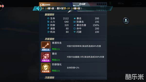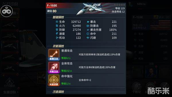 普通攻击:对敌方前排单体1架战机造成108%伤害(随技能等级变化)