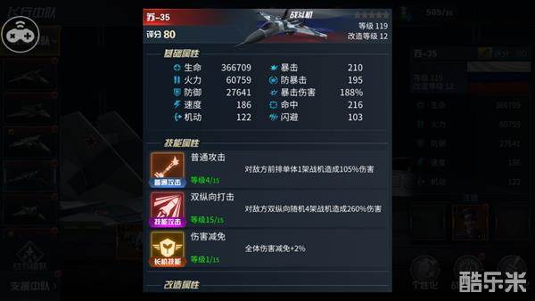 普通攻击:对敌方前排1架战机造成84%伤害(随技能等级变化)