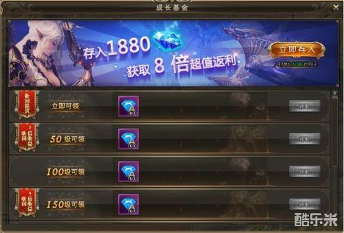 打开成长基金基金界面可以存入钻石获取超额返利