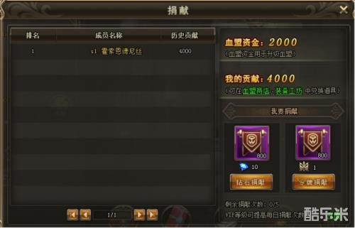 点击捐献按钮可以进行血盟捐献,包括钻石捐献和令牌捐献