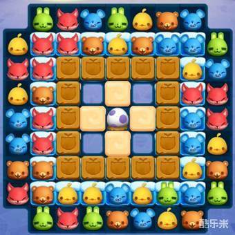 1、本关的主要任务有两个,分别是消除冰块和消除紫色棋子。由于棋盘上并不存在紫色棋子,紫色棋子也并不会通过消除掉落,只能通过攻击棋盘中间的彩色蛋孵化生成。而彩色蛋的周围有大量障碍物,且障碍物下也有冰块的存在。所以我们开局先消除这些障碍物,才能就近匹配攻击彩色蛋,才能消除障碍物下方的冰块,更好的完成本关的两个主要任务。