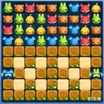 1、本关的步数较少,建议在开始闯关时使用开局加3步道具,增加闯关成功率。开局可以看到需要消除的木箱数量非常多,且都集中在棋盘下方区域,单纯的就近匹配棋子来消除木箱,会消耗大量步数。所以我们想要快速消除木箱,需要在就近匹配消除的同时,尽量多的连取特殊棋子,利用特殊棋子的大范围攻击,可以更快的消除木箱。