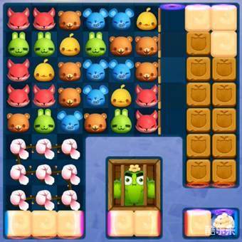 3、棋盘下方有一个仙人掌,消除围困它的木笼,可以解救它。在解救的同时,还会帮助我们消除棋盘上的大部份奶油。所以有机会可以尝试连取特殊棋子,并将它们进行组合。利用特效组合的大范围攻击,可以帮助我们解救仙人掌,并消除大量奶油,更快的完成过关任务。