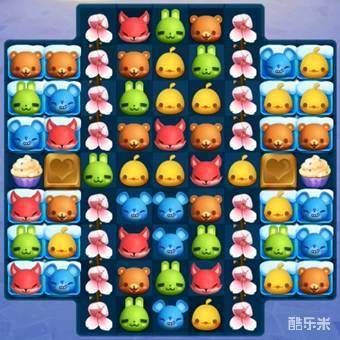 1、Kitty都隐藏在冰块下方,而本关的冰块都在棋盘左右两侧,且数量并不多,所以寻找到kitty并不困难。但棋盘两侧的冰块被樱花阻挡,可供我们直接匹配消除冰块的机会并不多。所以我们需要先消除樱花,才能获取更多消除冰块的机会。