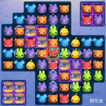 3、由于本关的步数并不多,所以蜂蜜并不需要主动去消除。应当节省步数,在攻击蜂蜜罐生成足够蜂蜜的同时,尽量连取特殊棋子,并将特殊棋子进行组合。利用特效组合的大范围攻击,不仅可以更快的生成更多蜂蜜,还能直接收集棋盘上大部份的蜂蜜,更快的完成过关任务。