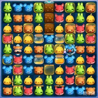 1、本关的棋盘非常完整,且蜂蜜罐都在靠近中间的位置,攻击获取蜂蜜的难度较低。但棋盘上的障碍物较多,可供我们匹配消除的方位减少了许多。所以我们开局,在匹配攻击蜂蜜罐的同时,还需要注意优先消除这些障碍物,获取更多匹配攻击蜂蜜罐的方位,才能更快速的获取任务所需的蜂蜜。