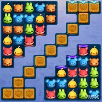 3、棋盘上方会掉落大量随机宝箱,可以与同颜色的棋子匹配消除。消除它们可以有概率获得各种特殊棋子。所以我们有机会尽量多的消除它们,获取特殊棋子,并将它们进行组合。利用特效组合的大范围攻击,无论是消除冰块和木箱,还是收集铃铛,都能显的更加容易。