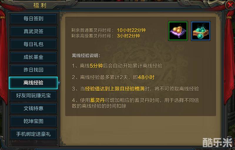 如果在等级早早就升级到了104级后,对经验的需求反而不那么迫切了,在日常任务中则可以适当的减少一下对刷经验的投入。例如在离线经验的领取时,如果使用普通蓄灵丹可以增加50%经验,如果使用高级蓄灵丹可以增加150%的经验,蓄灵丹会需要花费元宝购买,使用蓄灵丹在中前期冲击阶段很重要,而现在暂时满级时不使用蓄灵丹也是可以的。