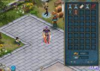 【交易】 点击"交易"按钮以后,鼠标指针变成请求交易的状态。然后将鼠标左键移动到想交易对象的身上,单击鼠标左键即可向对方发送交易请求,等对方同意交易的请求以后,即会出现交易界面。在交易界面上放置想交易的物品,或者是输入想交易的金额并确认后,再点击交易界面上的"同意"按钮,对方同意以后即可完成此次交易。 ----------------------------------------------------- |  |