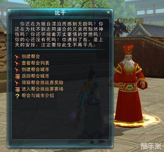 在比干处选择查看帮派列表,再查找到您想加入的帮派,点击申请加入就可以了。不过建议您在此之前留意一下聊天频道,新服刚开之初,会有很多帮派在世界频道上喊话,与他们多聊聊天,多了解一下各个帮派的特点,再选择一个让您心动的帮派加入吧!