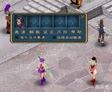 在组队界面上队长可以进行一些设定,进行设定的方法是点击功能名称后面的方框,如果框内的“√”出现则表示此功能打开。框内的“√”消失则表示关闭此功能,这些设定分别为: