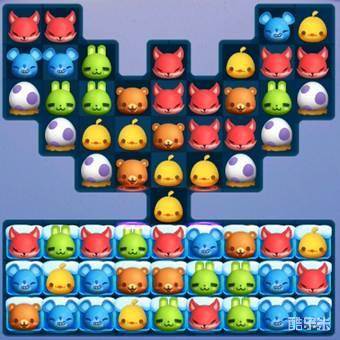 2、接着,紫色棋子并不会从棋盘上方掉落,我们必须打破棋盘上方区域的彩色蛋,才能让彩色蛋孵化出紫色棋子。而本关孵化出的紫色棋子,会优先替换掉下方冰块区域的棋子。所以我们尽量就近匹配攻击彩色蛋,让下方区域积累足够的紫色棋子,可以非常容易的让紫色棋子自动消除,并获得特殊棋子哦。